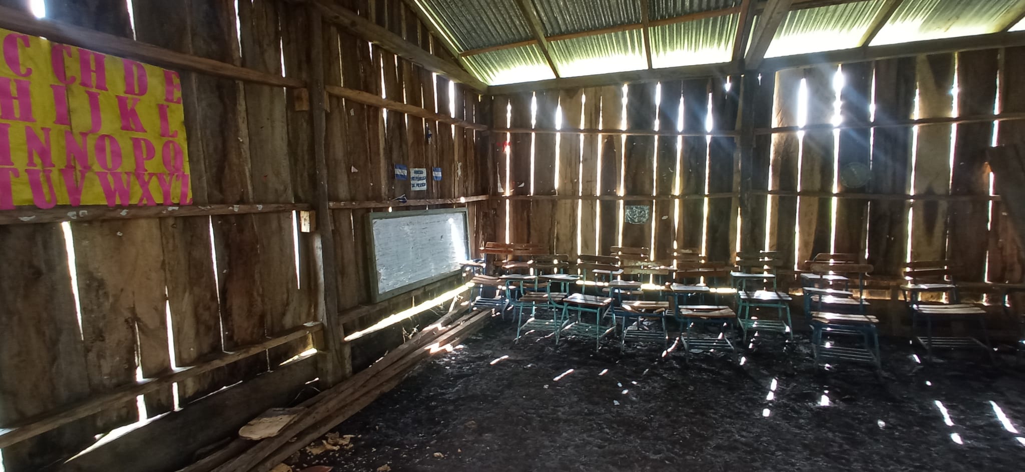 Para llegar hay que abordar el bus de ruta desde Camoapa hasta La Calamidad por una carretera adoquinada. Desde ahí son dos horas a pie, pasando el río. Así llegamos hasta un edificio construido en madera. Sin luz ni agua. El sol y el calor se filtra entre las tablas de las paredes. El techo de uralita, plagado de goteras por donde pasa el agua durante la época de lluvias. El suelo es de tierra apelmazada. Hormigas, arañas, los temidos zancudos que trasmiten la malaria y el dengue. Los alumnos se asientan en viejos pupitres rotos, sucios, despintados. Al frente una pizarra fijada a la pared con unos clavos, allí unas cifras dibujadas nos anuncian que llegamos en plena clase de matemáticas. En un rincón una mesa tambaleante aguanta el peso de una buena cantidad de libros viejos a modo de biblioteca. Cada uno de ellos posee apenas una libreta, a veces compartido entre varios hermanos, un lápiz gastado procedente de una donación. Los niños y niñas se ponen en pie ante la visita y saludan formalmente. Muchos de ellos están descalzos, conocí unos hermanos en Honduras que compartían los mismos zapatos, uno asistía a clases por la mañana y otro por la tarde. Ropas humildes y, en ocasiones sucias. Caras de hambre, porque la escuelita les pilla lejos de casa y deben caminar desde la madrugada desde sus casas, sin desayunar, expuestos al calor, a la lluvia, vulnerables ante el ataque de cualquier desalmado sin escrúpulos. Después de varias horas de clase regresan a casa por los mismos caminos desiertos a través del monte. En los alrededores de la escuelita, la única instalación es una sucia letrina, todo lo demás en verde. La levantaron hace años los propios padres con sus manos, haciendo turnos por días para trabajar. El maestro viaja cada semana desde la ciudad cercana y durante la semana duerme en una pequeña casita de barro que cede la comunidad de forma gratuita.