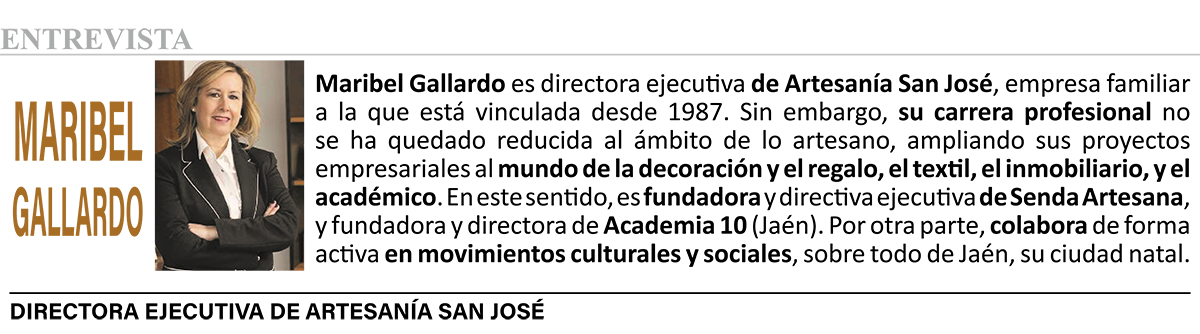 La empresa nació en Los Villares, donde mi bisabuela y mi familia paterna trabajaban la cestería. Mi padre, José Gallardo, continuó con la tradición familiar, se trasladó a Jaén y Madrid, donde estableció un departamento de exportación. Comenzó con la expansión por todo el mundo. Estudió nuevos materiales, nuevos diseños adaptados a la internacionalización. Fundó junto a otras empresas la Feria del Regalo de Madrid (ahora llamada Intergif). Era una persona capaz y trabajadora, con visión de futuro. Mis padres iniciaron un gran proyecto empresarial que yo, junto a mi marido, he continuado con su misma ilusión y fuerza. Me trasmitieron el valor de la familia, del esfuerzo y del sacrificio, a mirar hacia delante, sin olvidar nuestro pasado.