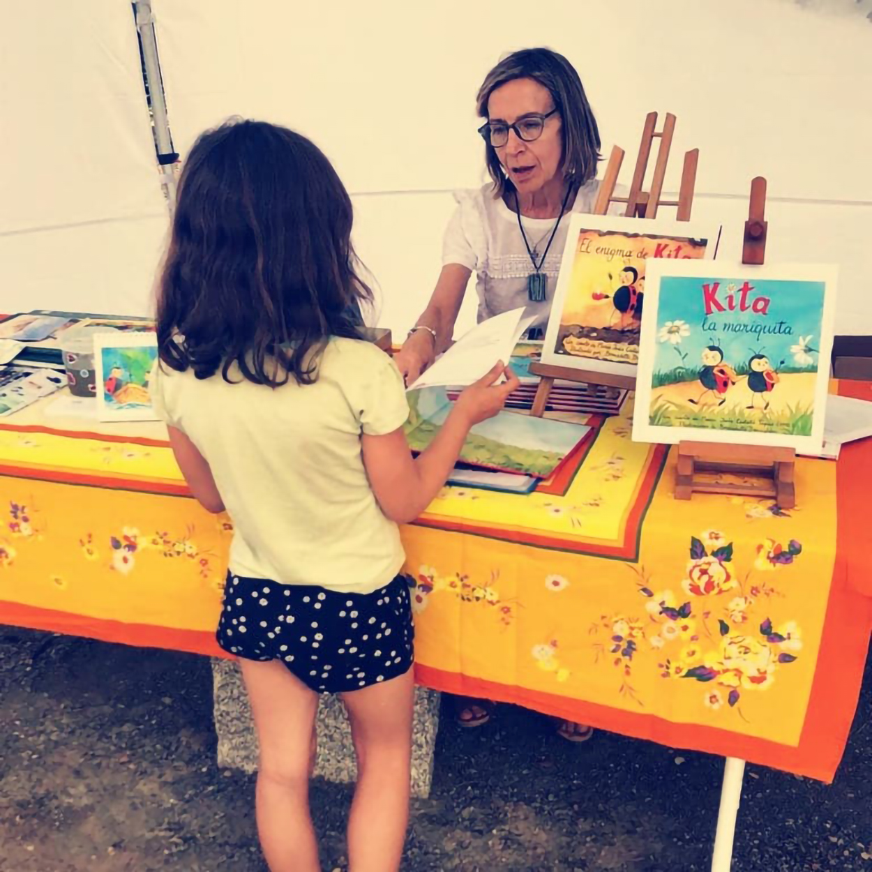 Como bien sabes, Maribel, Kita nació como un ejercicio práctico en el que me tenía que poner en la piel de un animal y ver la vida a través de sus ojos. Fue durante la realización de un Taller de Escritura de Isabel Cañelles en el mes de febrero de 2021. Mis compañeros destacaron entonces que me había salido un cuento con valores. Entonces se me ocurrió la idea de imprimirlo y dedicárselo a mi primer nieto, Lucas, que iba a nacer en mayo de ese mismo año. No tenía ni idea de cómo hacerlo y le pedí ayuda a uno de mis hermanos, Pablo, que está relacionado con el mundo de la publicidad. Estábamos en pandemia y todo era complicado, aunque para mí no lo fue tanto. Conseguí de forma providencial contactar con una artista de una sensibilidad exquisita, Bernadette Demuijlder, que pronto se enamoró del personaje y captó perfectamente mi idea de la mariquita. Luego, cuando ya estábamos metidas en faena, pensé en editar, en lugar de uno, 500 cuentos y dedicar todos sus beneficios a la obra que los Hijos de María Evangelizadora llevan a cabo en sus Misiones. No sabía cuánto me iba a costar esta bendita locura, pero las cosas de Dios son increíbles, y conseguí un par de benefactores en el último momento que me ayudaron a sacar adelante mi primer cuento.