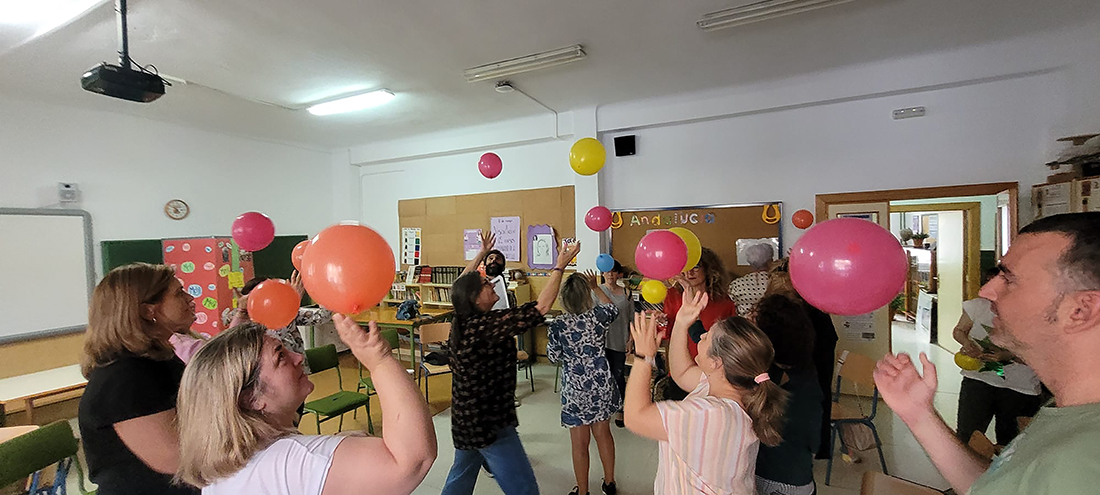 Para ello maestras y familias en un ambiente distendido han puesto su conciencia en el aire que ponían dentro de un globo para nombrar alguna sensación, para con ese aire al inflar el globo desprenderse de algún miedo, de alguna preocupación y comunicar entre bailes, abrazos y música que somos más fuertes que nuestros miedos y pesares.