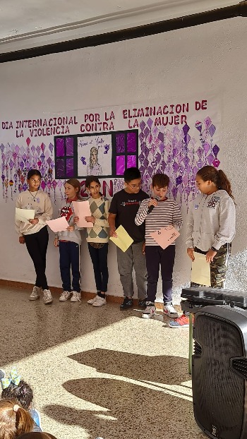 El alumnado de 5° de Primaria han deleitado la jornada recitando fragmentos de canciones contra el maltrato y el de 6° han declamado poesías de creación propia contra la violencia machista.