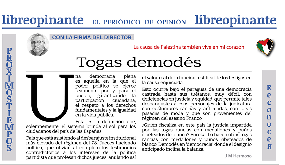 PRÓXIMOS TIEMPOS "¿Quién fiscaliza en este país la justicia impartida por las togas rancias con medallones y puños ribeteados de blanco? |